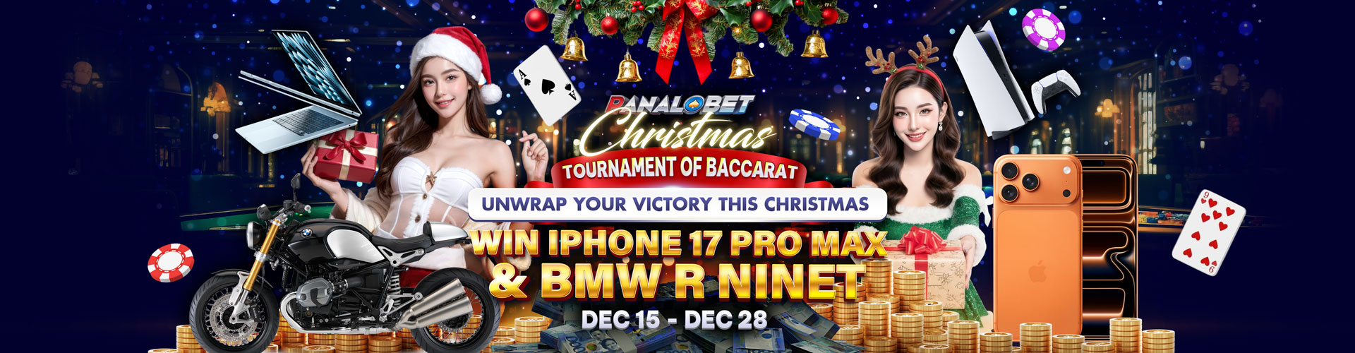 All players who join the Baccarat Tournament will receive 1 raffle ticket for every ₱10,000 in deposits or ₱50,000 in Baccarat turnover during the tournament period. Each player can earn up to 20 tickets per week. All tickets will qualify for the Final Raffle Draw for a chance to win the grand prize — a BMW R nineT.